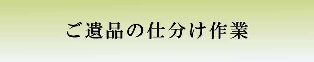 仕分け作業はお任せなのか、一緒に確認をしながらなのか、こんな物があったはず、この書類があるかも、など様々なご要望と可能性をお伺いしながら仕分け作業のプラン形成をおこないます。業者としての遺品整理の在り方を押し付けるのではなく、お客様のご要望通りに進められるよう最善の配慮をいたします。